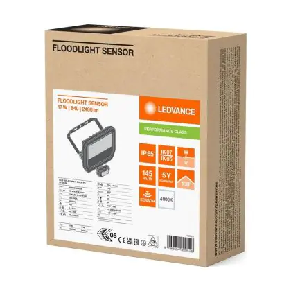 Ledvance Led-Scheinwerfer Aluminium Schwarz 17W 2400lm 100D - 840 | IP65 - Bewegungs- Und Lichtsensor - Symmetrisch