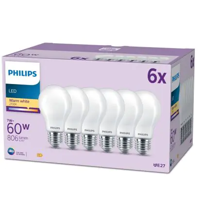 Mehrfachpackung 6x Philips Glühbirne LED E27 Birne Matt 7W 806lm - 827