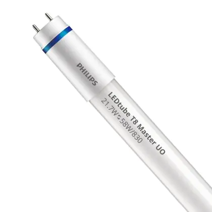Bei der Philips LED Röhre 150cm | 3000K 21.7W - Master UO handelt es sich um eine energieeffiziente LED-Röhre. Sie ersetzt Ihre konventionelle Leuchtstoffröhre mit 58W. Die Röhre ist 1500 mm lang und hat die Farbtemperatur 3000K - Warmweiss. Die durchschnittliche Lebensdauer der LED-Röhre beläuft sich auf 70000 Stunden. Wir bieten Ihnen für dieses Produkt eine Garantie von 5 Jahre an.