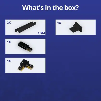 | Herstellername | Complete L shaped 1-Phase Track Set Black – 1,5 x 1,5 meter incl. End Cap, Power Connector and L -C | |