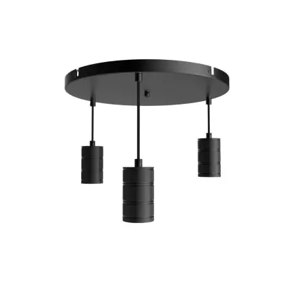 Calex Retro Suspension Luminaire Cordset Ronde Métal Noir |incl. câble 2 Mètre - Convient pour 3xE27