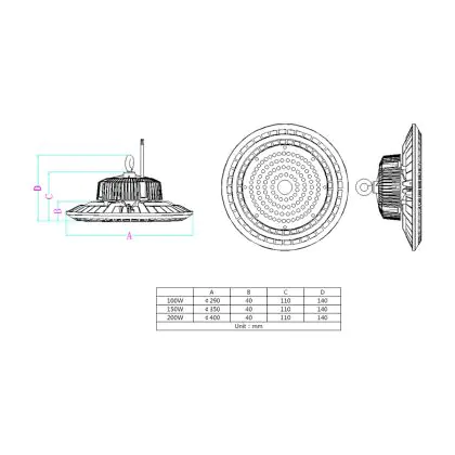 Description Highbay LED 200W 22000lm 90D - 840 | IP65