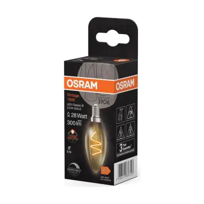Cette ampoule Osram Vintage 1906 LED Classic E14 Bougie Filament Dorée 3.5W 300lm - 922 | Meilleur Rendu De Couleur - Dimmable - Remplacement 25W avec son efficacité lumineuse de lumen par watt vous permettra de profiter d’un éclairage de qualité. Avec sa durée de vie de 15000 heures, vous n’aurez pas à vous soucier de son remplacement avant quelques années.