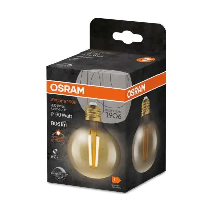 Cette ampoule Osram Vintage 1906 LED E27 Globe Filament Dorée 7.2W 806lm - 824 | Remplacement 60W avec son efficacité lumineuse de lumen par watt vous permettra de profiter d’un éclairage de qualité. Avec sa durée de vie de 15000 heures, vous n’aurez pas à vous soucier de son remplacement avant quelques années.