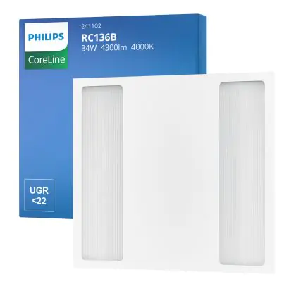 Les panneaux LED sont des solutions éco-énergétiques permettant de remplacer les panneaux classiques équipés de tubes fluorescents. Ce panneau Philips Dalle LED CoreLine RC136B 25/34W 3100-4300lm - 840 | 60x60cm - UGR est conçu pour remplacer une dalle classique de 4x18. La consommation de ce panneau LED est considérablement plus faible qu’un panneau classique, à savoir, seulement 34 watts. Une économie d’énergie sans compromettre la qualité de la lumière. Le flux lumineux est de 4300 lumens. La lumière de ce panneau LED est diffusé à degrés et offre un bon rendu des couleurs. La durée de vie moyenne de ce panneau LED est de 50000 heures.