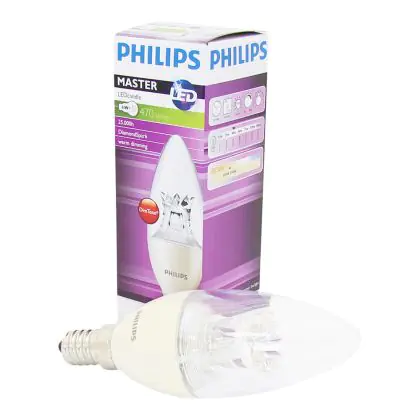 Cette ampoule Philips MASTER LED Bougie Couronne Claire E14 6W 470lm - 822-827 Dim To Warm | Dimmable - Remplacement 60W avec son efficacité lumineuse de lumen par watt vous permettra de profiter d’un éclairage de qualité. Avec sa durée de vie de 25000 heures, vous n’aurez pas à vous soucier de son remplacement avant quelques années.
