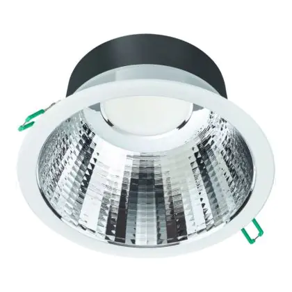 Les spots LED encastrables (aussi appelés Downlights) sont des solution éco-énergétiques permettant de remplacer les spots classiques équipés de technologie à fluorescence. Ce downlight Philips Spot encastrable LED Coreline DN140B 20.5W 2200lm 120D - 830 | 216mm - Aluminium Réflecteur - Dali Dimmable est conçu pour remplacer un spot classique de 2x18. La consommation de ce downlight LED est considérablement plus faible qu’un luminaire classique, à savoir, seulement 20.5 watts. Une économie d’énergie sans compromettre la qualité de la lumière. Le flux lumineux est de 2200 lumens. La lumière de ce downlight LED est diffusé à 120 degrés et offre un bon rendu des couleurs. La durée de vie moyenne de ce luminaire LED est de 50000 heures.
