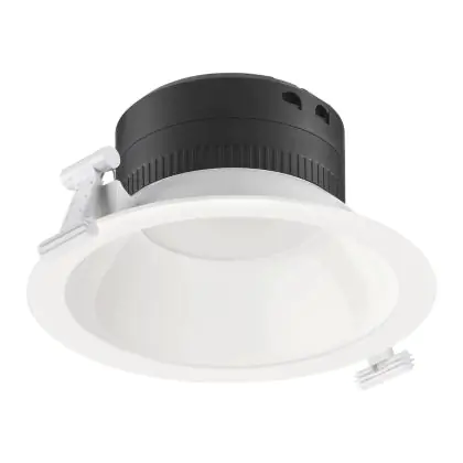 Les spots LED encastrables (aussi appelés Downlights) sont des solution éco-énergétiques permettant de remplacer les spots classiques équipés de technologie à fluorescence. Ce downlight Philips Spot encastrable LED Coreline DN140B 20.5W 2200lm 120D - 830 | 216mm - Blanc Réflecteur - Dali Dimmable est conçu pour remplacer un spot classique de 2x18. La consommation de ce downlight LED est considérablement plus faible qu’un luminaire classique, à savoir, seulement 20.5 watts. Une économie d’énergie sans compromettre la qualité de la lumière. Le flux lumineux est de 2200 lumens. La lumière de ce downlight LED est diffusé à 120 degrés et offre un bon rendu des couleurs. La durée de vie moyenne de ce luminaire LED est de 50000 heures.
