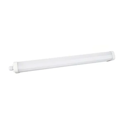 La réglette LED, Réglette LED Étanche Eco V2.0 20W 2200lm - 865 | 60cm - Câblage Traversant (3x1.5mm2) est conçue pour remplacer les réglettes TL-D traditionnelles et permettant d’économiser jusqu’à 50% d’énergie. Très souvent utilisé pour l’éclairage d’entrepôts, d’usines, de parking et d’autres grands espaces extérieurs. Très simple d’installation, cette réglette de 60cm peut se fixer au plafond et au mur et projette 6500K - Lumière du Jour, comme couleur de lumière. La Réglette LED Étanche Eco V2.0 20W 2200lm - 865 | 60cm - Câblage Traversant (3x1.5mm2) dispose d’un indice de protection IP65 à l’eau et la poussière et d’une résistance aux chocs IK10.